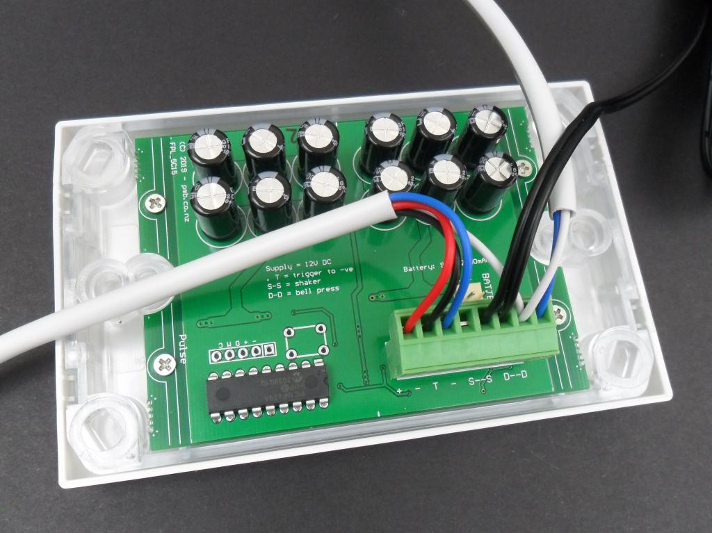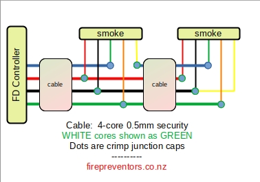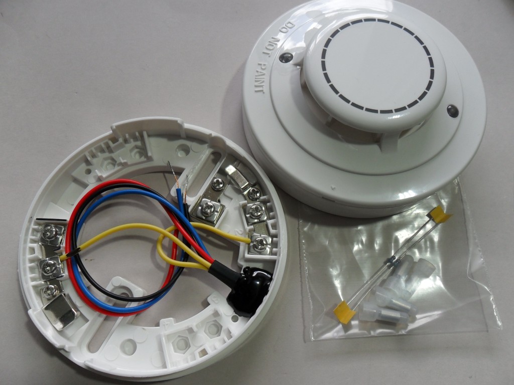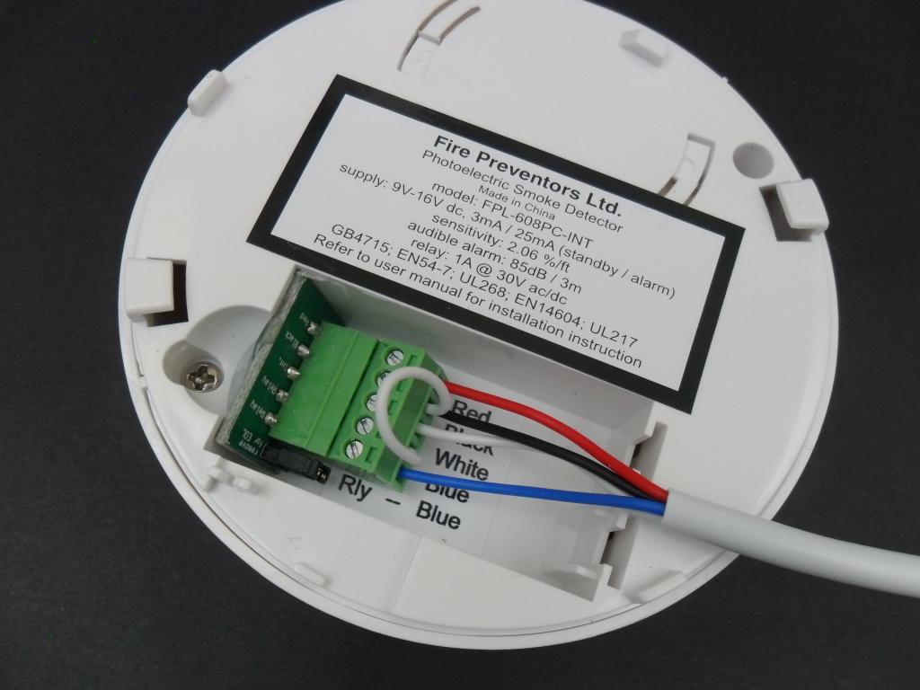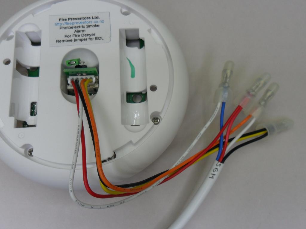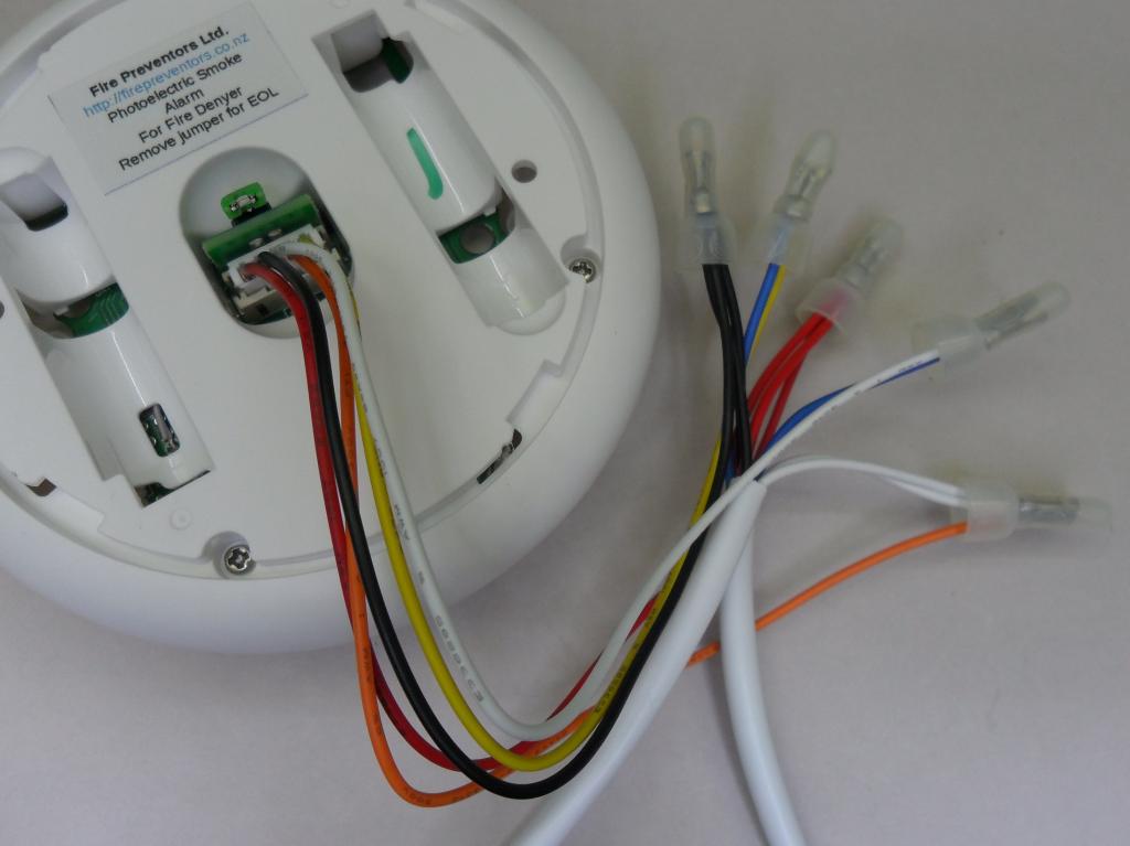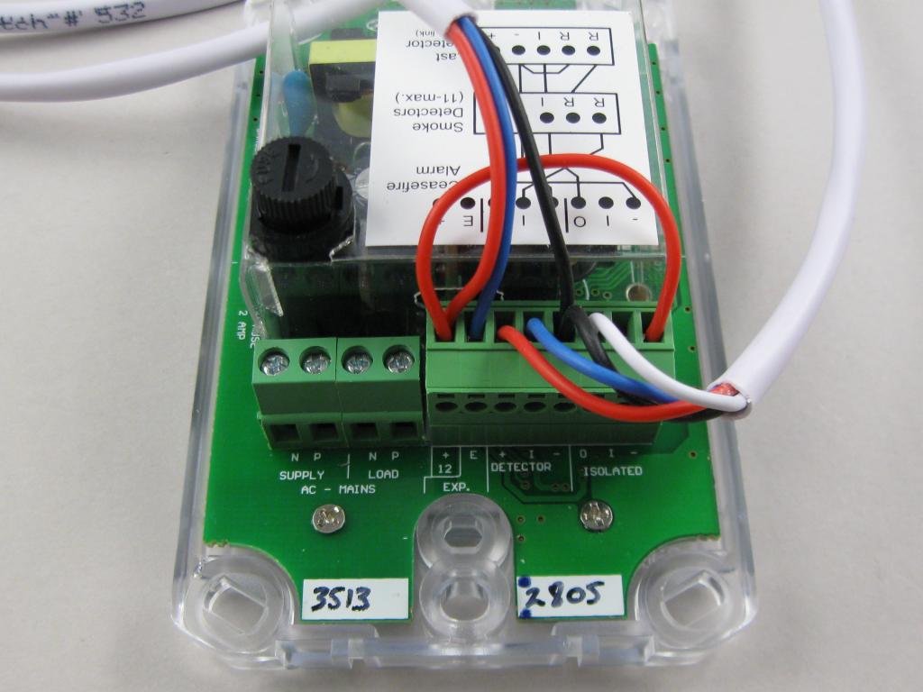The white 4-core wire to the right connects to the smoke detectors, the other wire to the flashing alerters.