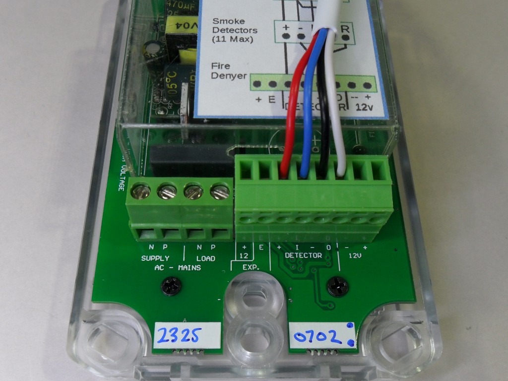 - Power supply to The Fire Denyer can be fed from a light switch, but it is best connected to its own supply on the switchboard before RCD supply, maximum 16 amps.